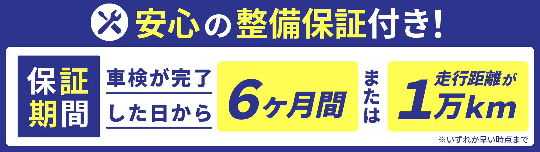 横浜市港北区・都筑区・青葉区・泉区・川崎市幸区・高津区・中原区・大和市エリアのお客様が安心してご利用いただけるように、【車検後6カ月・または走行距離が1万Kmの保証】もお付けしております。