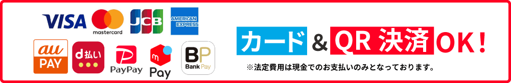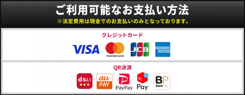 ※法定費用は現金でのお支払のみとなっておりますので、予めご了承くださいませ。